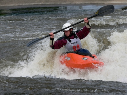 There are a number of different classes in Freestyle, kayak (K1), canoe (C1) and open canoe (OC1). Then there is Squirt.  Squirt is like ballet in a boat, with paddlers performing moves with names like ‘heli-wheels’ & ‘double scoops’.  Performed in special boats with minimal buoyancy it is held in specific eddy’s on the river. These spots have strong seams & eddy lines that enable paddlers to get ‘Down Time’ where, using a specific paddling technique the paddler & the kayak becomes completely submerged.
